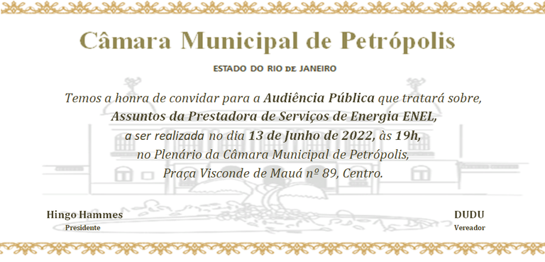 Audiência Pública para tratar Assuntos com a Prestadora de Serviços de Energia ENEL